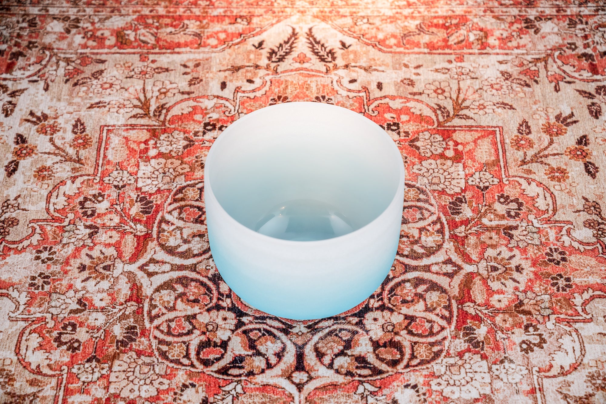 10" Color-Frosted Crystal Singing Bowl, Light Blue, Note G4, Throat Chakra