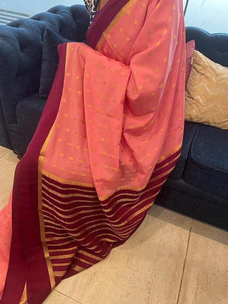 The delicate golden work border gives this saree a subdued look with a designer feel.