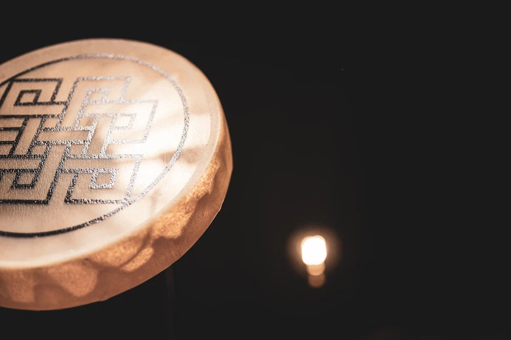 Immerse yourself in the sacred resonance of the Endless Knot with this Native American-style hoop drum, designed to enhance meditation,... Read more