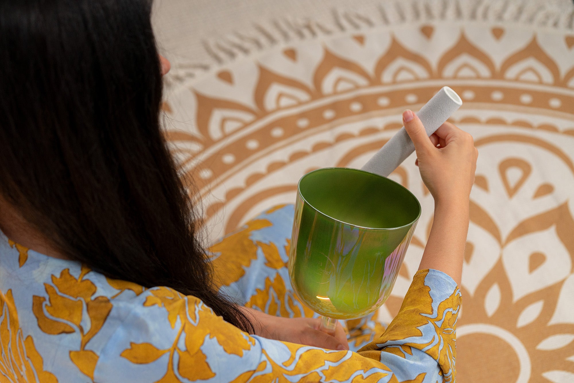 5.75" Essence Solfeggio Crystal Singing Bowl, UT 396 Hz, Olive Green