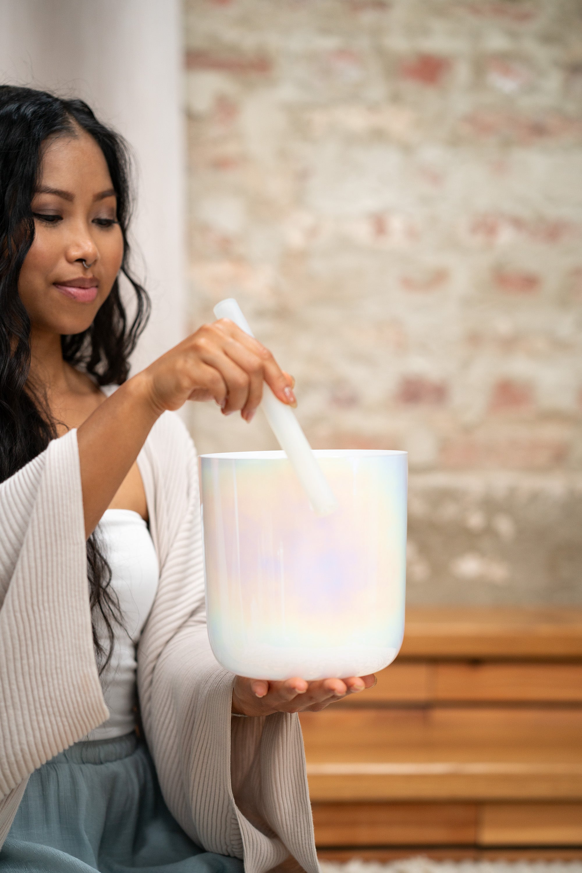 7" Essence Crystal Singing Bowl, Note B3, Creamy, Crown Chakra, 440 Hz