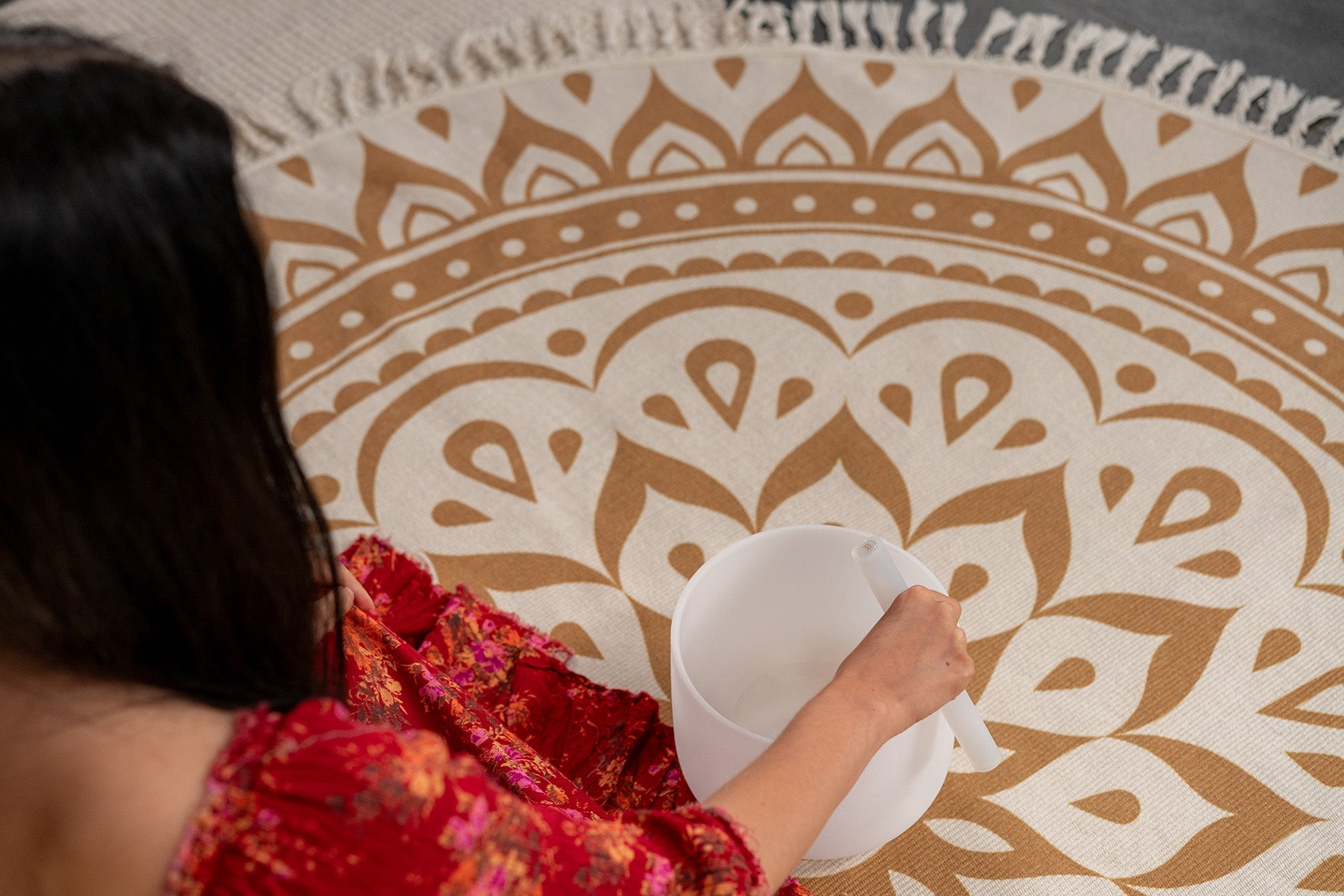 8" White-Frosted Crystal Singing Bowl, Note C5, Root Chakra