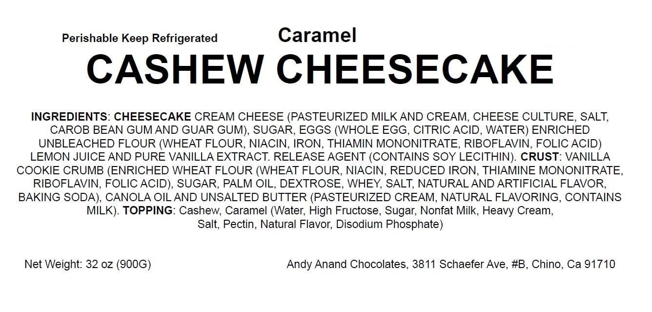 Andy Anand Caramel Cashew Cheesecake 9" - No Bake Required - Indulge in Delicious Cheesecakes - Order Now! (2.6 lbs)