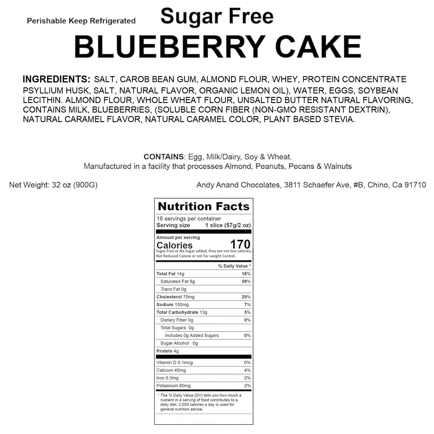 Andy Anand Deliciously Indulgent Sugar Free Blueberry Cake 9" Delicious Sugar Free Cake, Freshly baked from a bakery near you (2.6 Lbs)