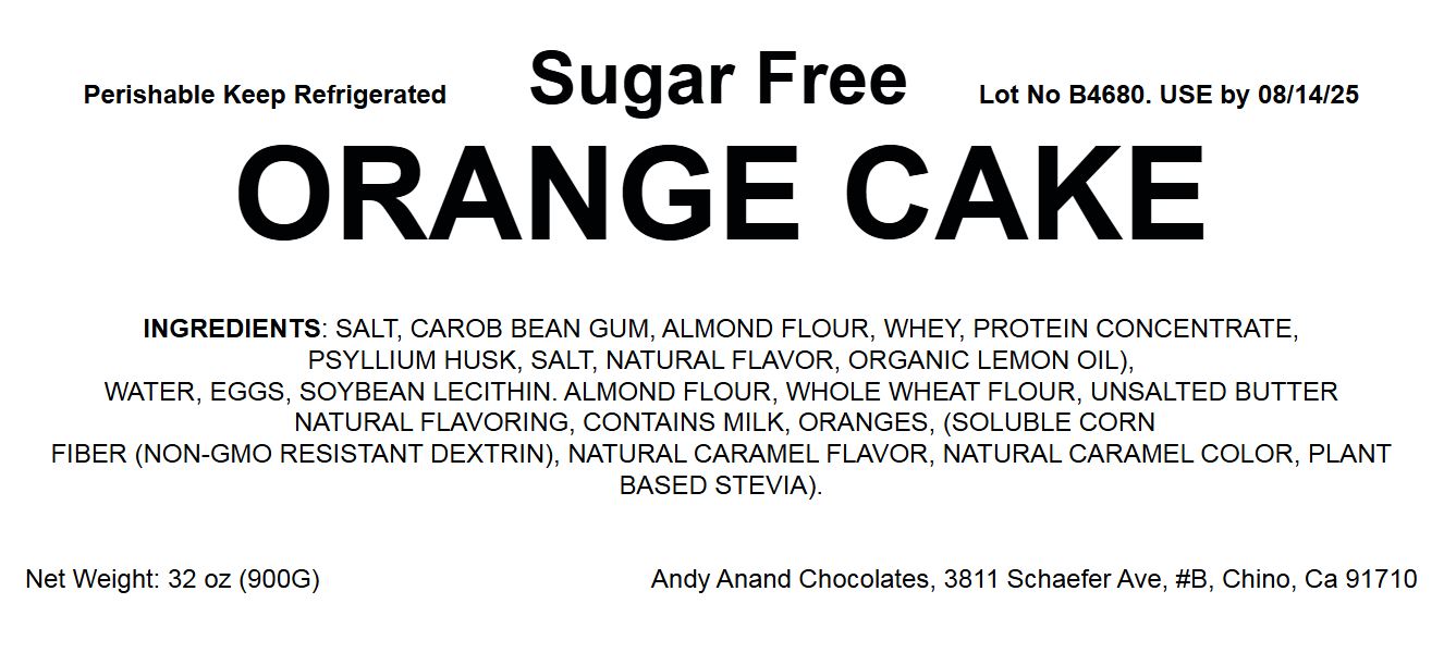 Andy Anand Deliciously Indulgent Sugar Free Orange Cake - Irresistible Taste without Added Sugar - Perfect Bakery Dessert For Diabetic (2 lbs)