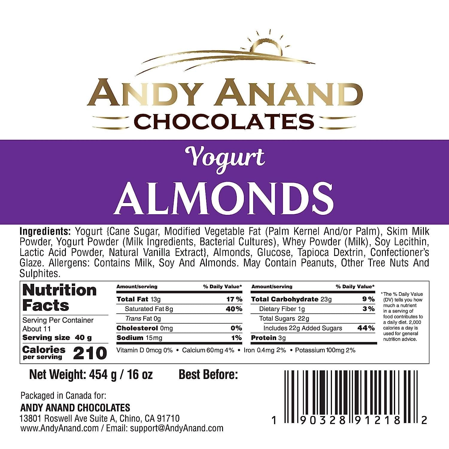 Andy Anand Premium California Greek Yogurt Almond Chocolate Gift Box – 1 lb, Decadent Chocolate Treats, 60% Cocoa Butter, Perfect for Special Occasions