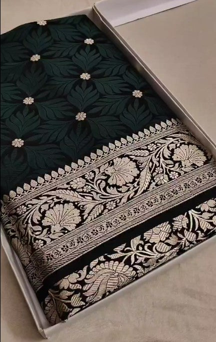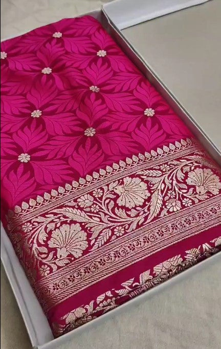 Enhance your wardrobe with our Beautiful Gold Zari Banarasi Mashru Silk Saree! Made with exquisite Banarasi silk and adorned with... Read more