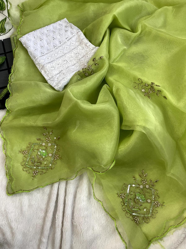 Fashion Tip: You can wear it with bangles and earrings that match. When you wear this stunning designer saree, you'll be the talk of the town.