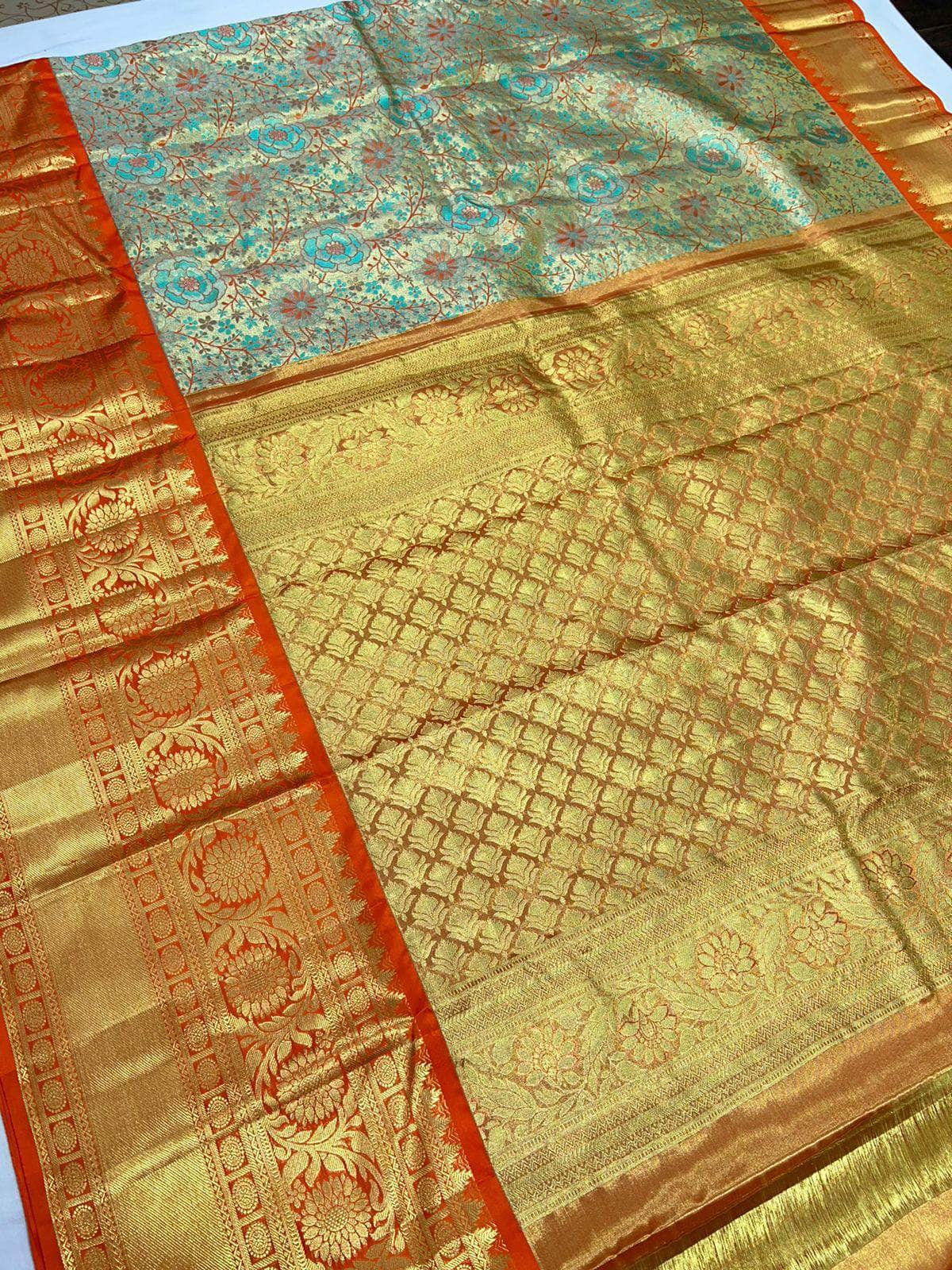 Beautiful Kanjivaram Authentic Silk Saree with floral patterns