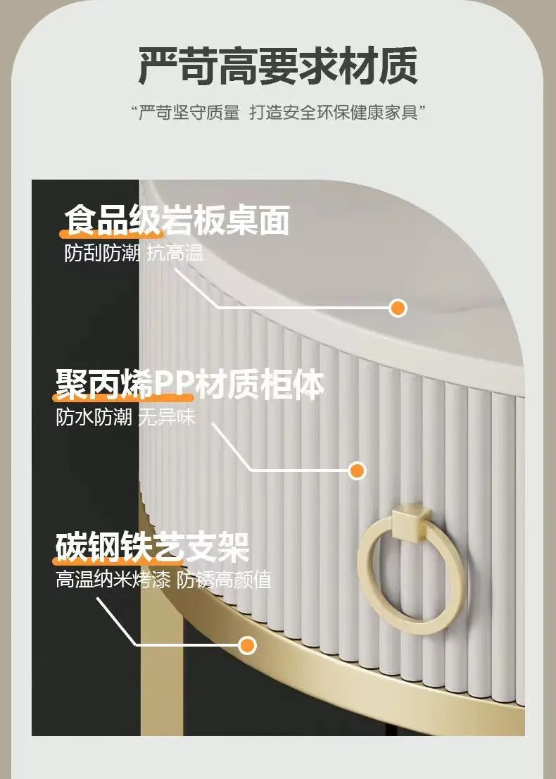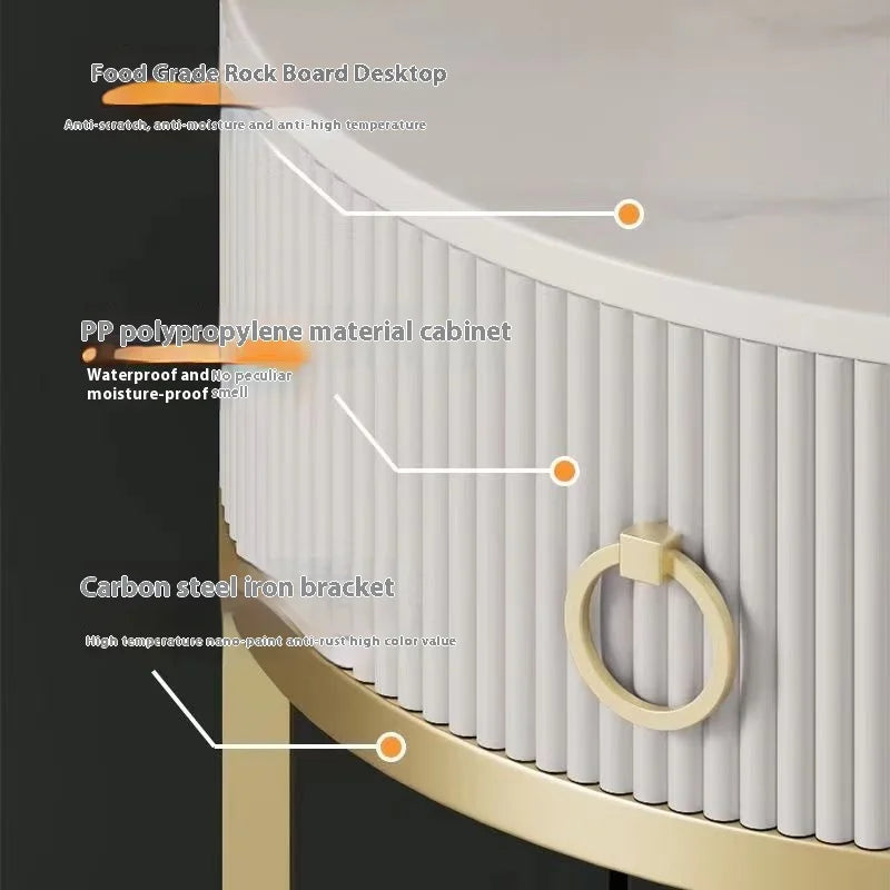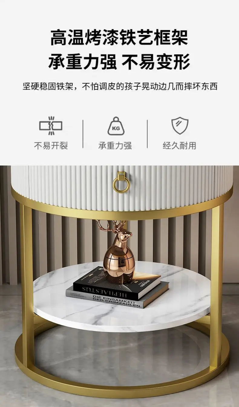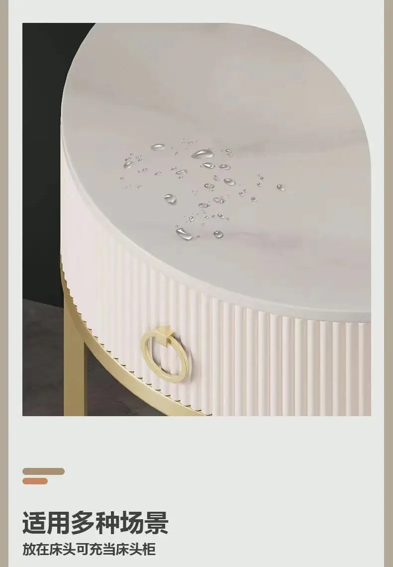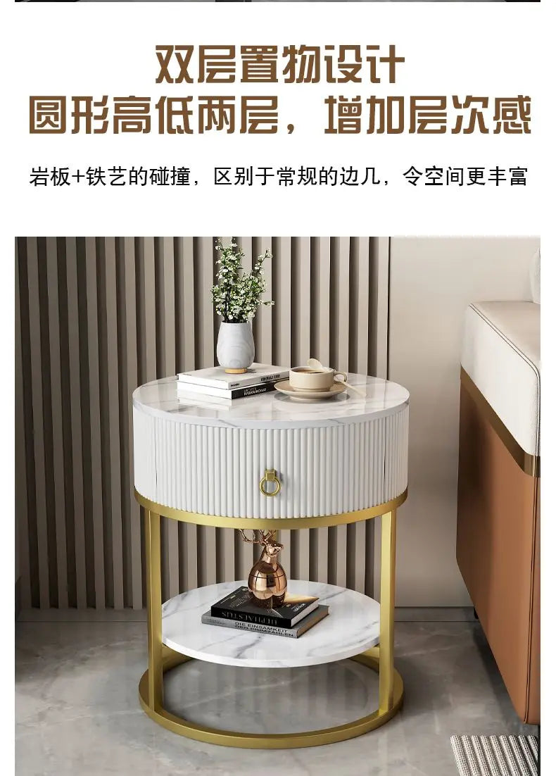 CelesteRound Modern Slate Nightstand – Minimalist Luxury Metal Side Table with Drawer for Bedroom & Living Elegance