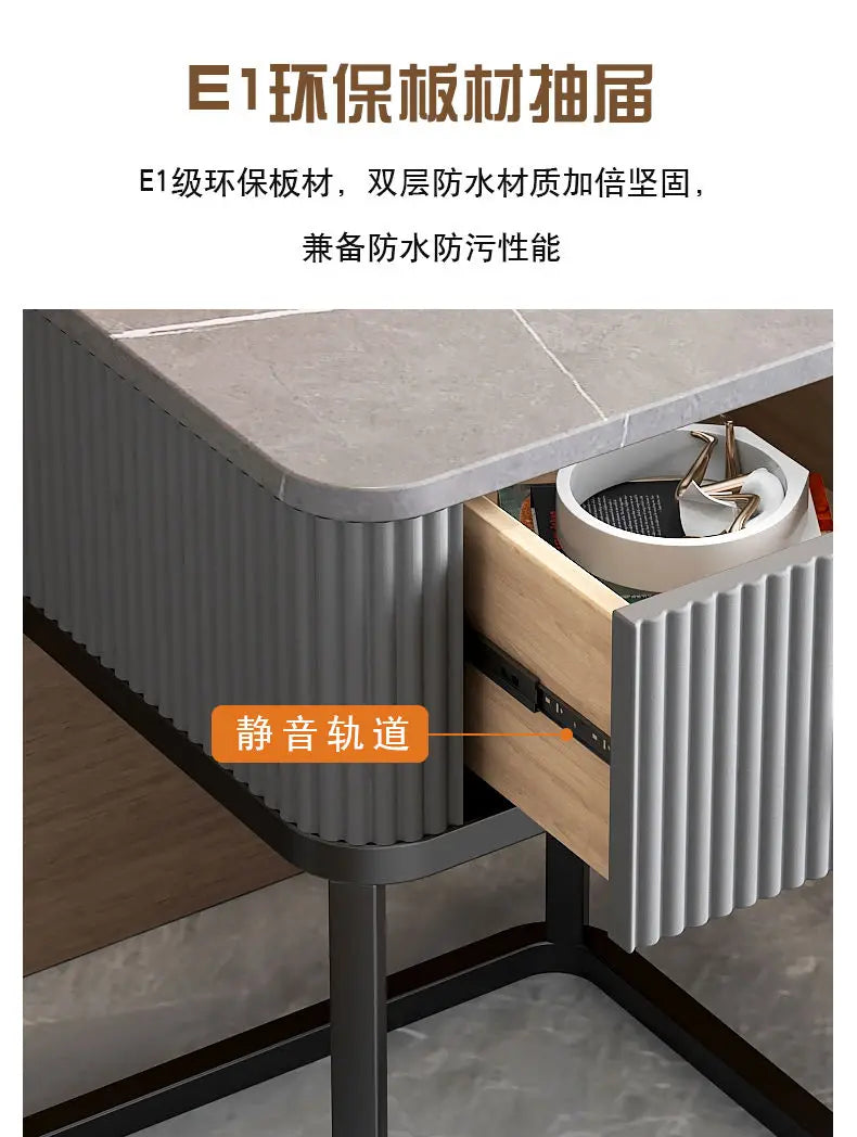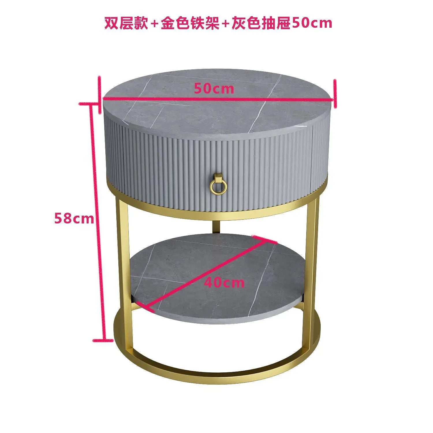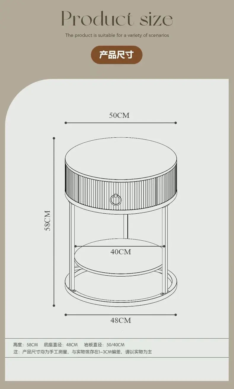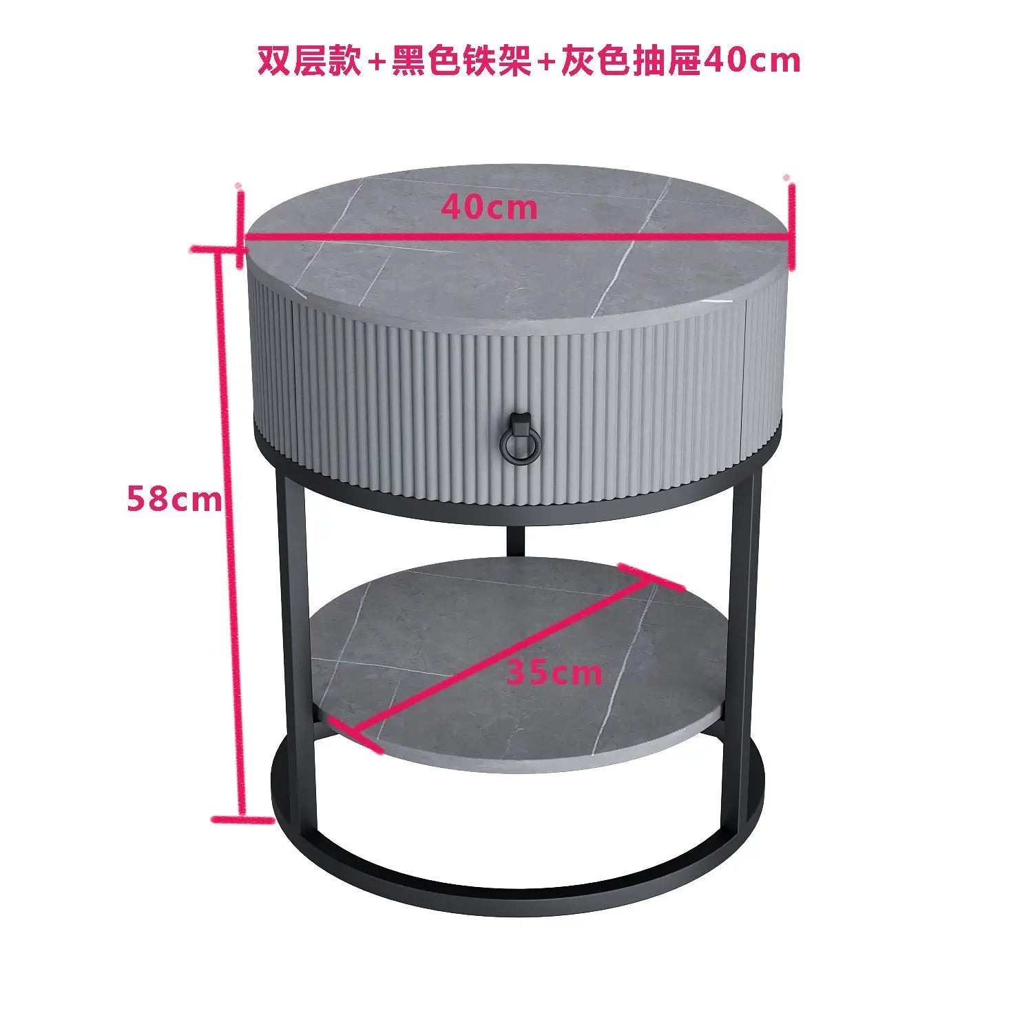 CelesteRound Modern Slate Nightstand – Minimalist Luxury Metal Side Table with Drawer for Bedroom & Living Elegance