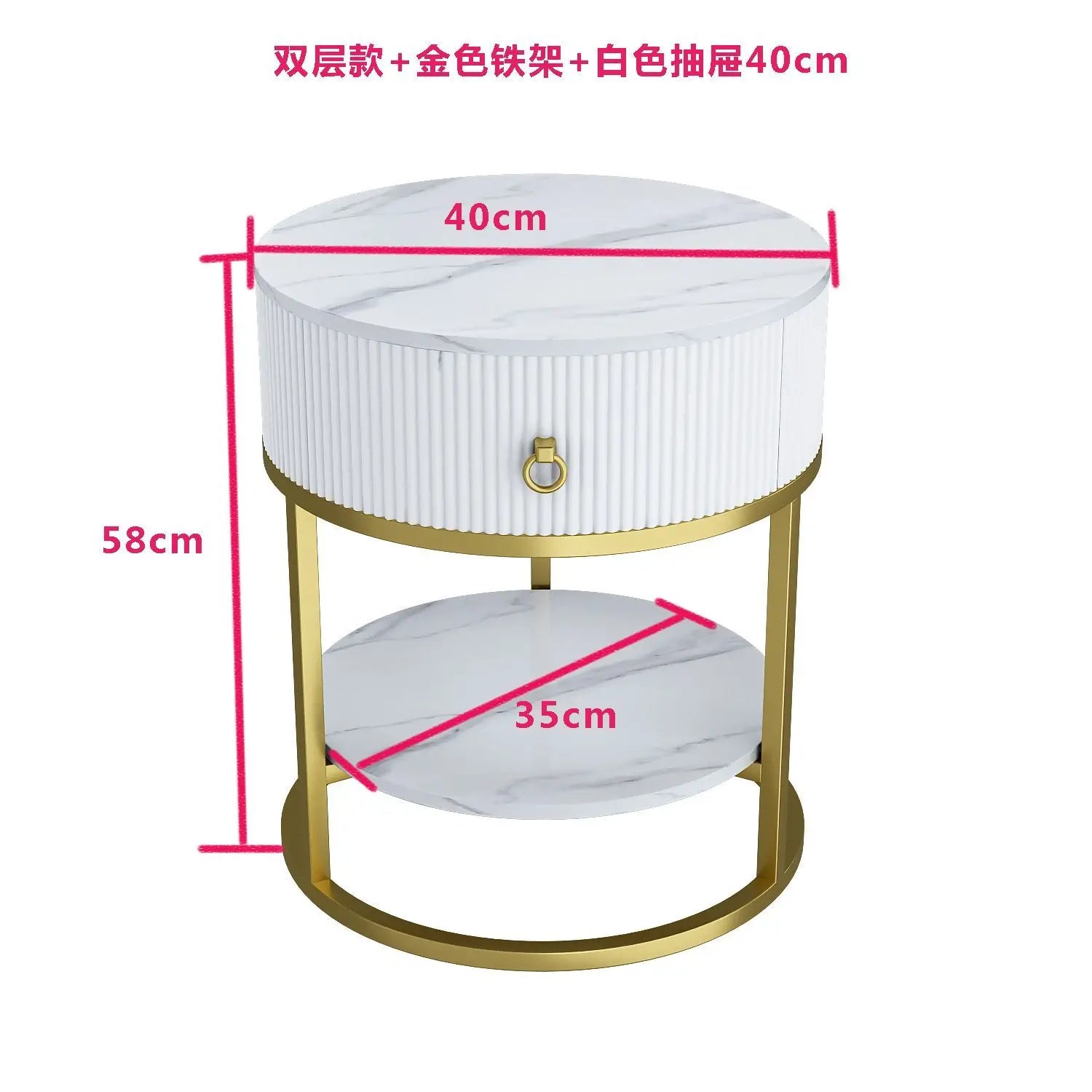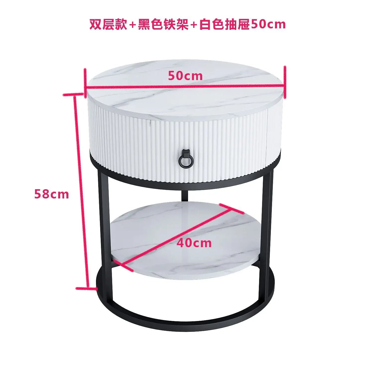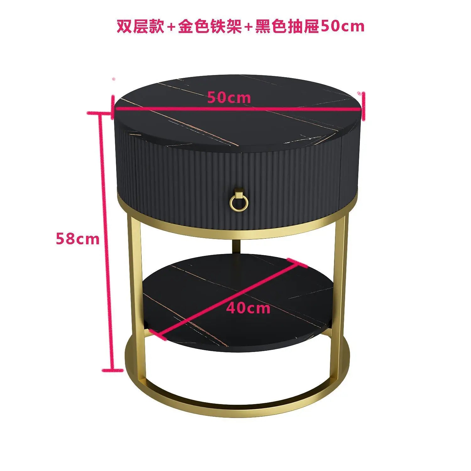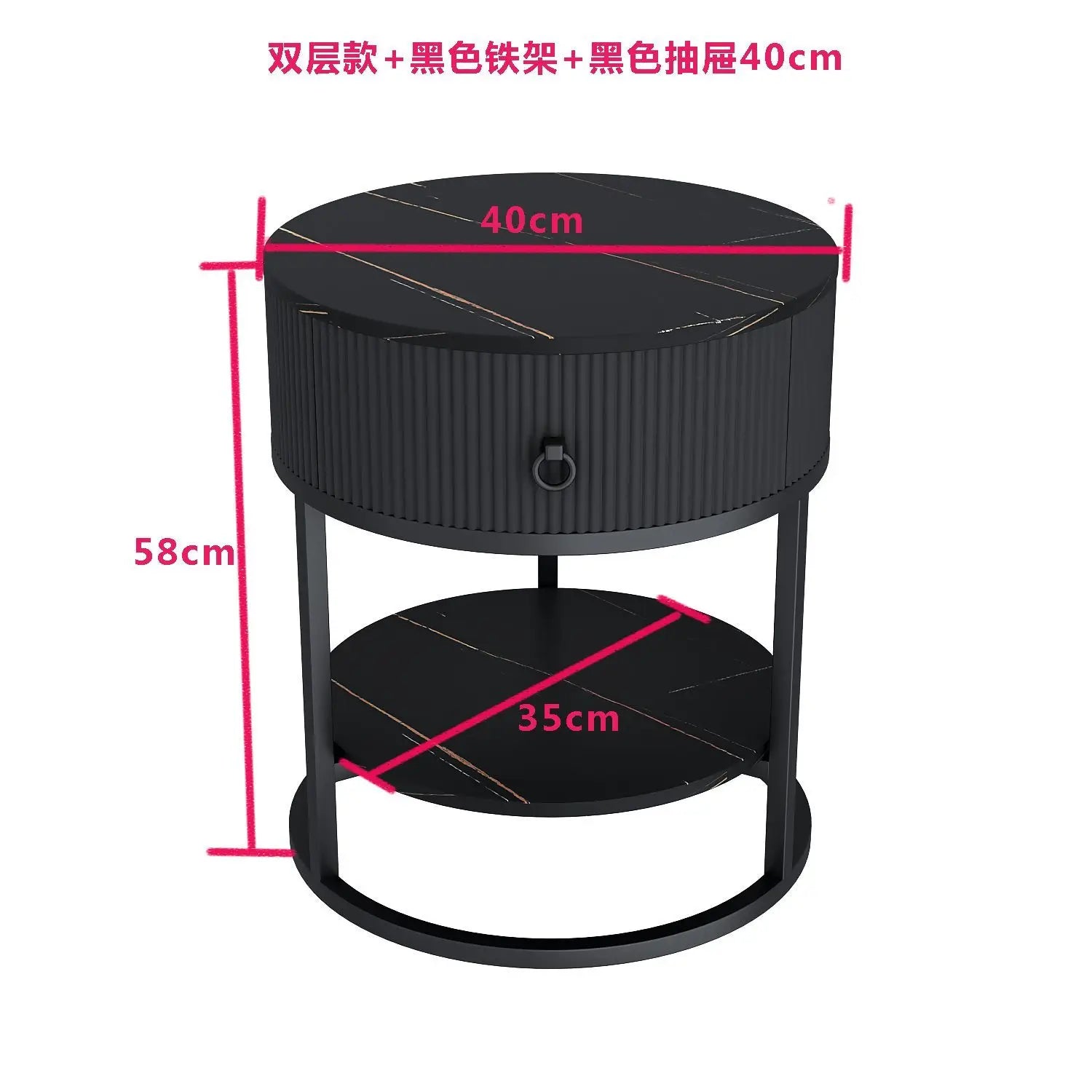 CelesteRound Modern Slate Nightstand – Minimalist Luxury Metal Side Table with Drawer for Bedroom & Living Elegance