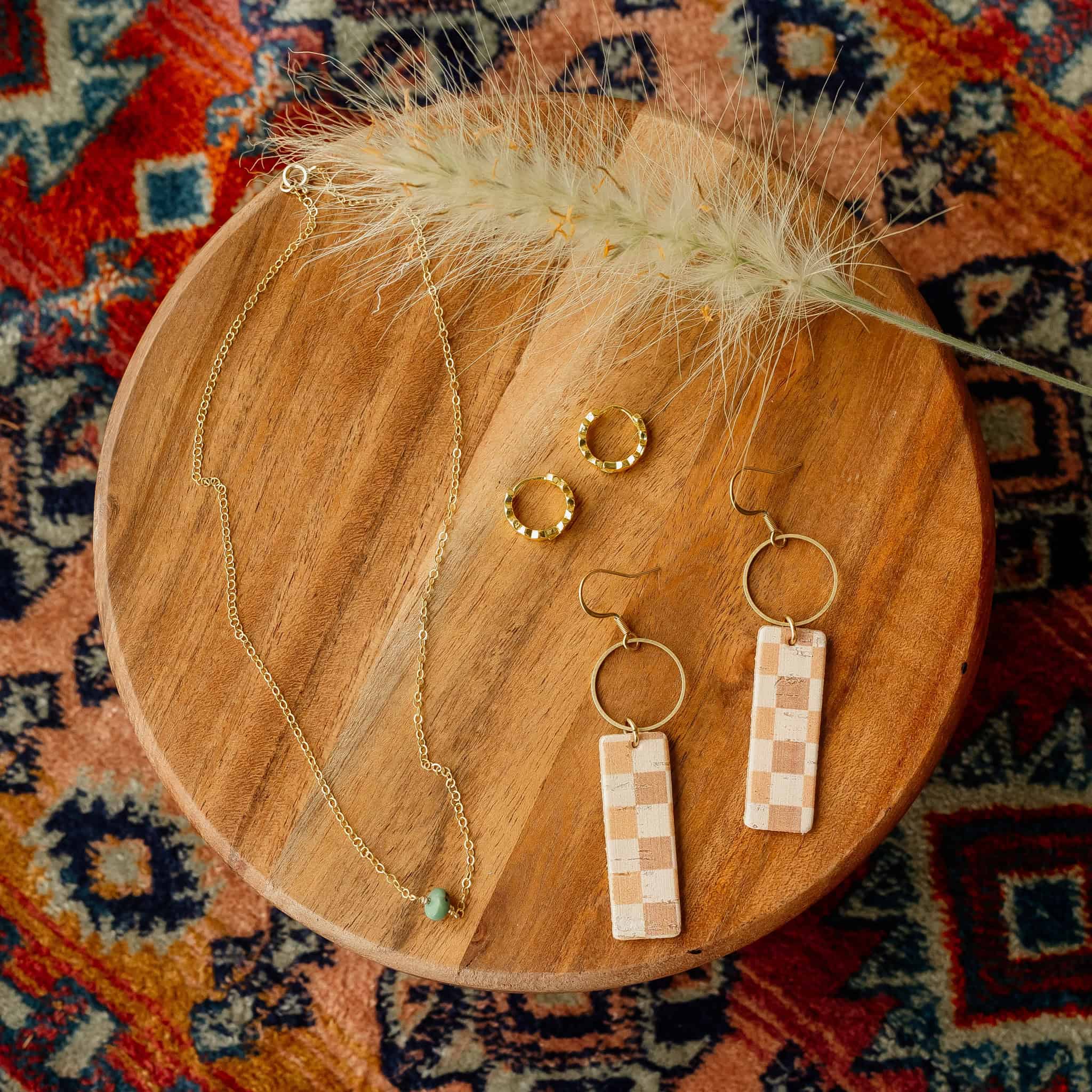 One of our best selling leather statement earrings. The neutral coloring of the Checkered Mia Earrings with a modern print... Read more