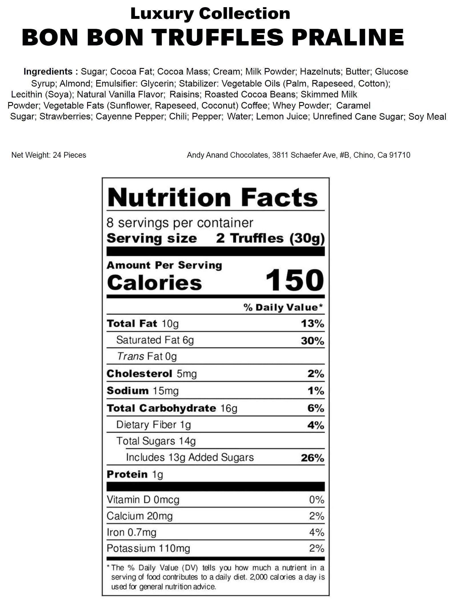 Chocolate Truffles Bon Bon Praline Box – Gourmet Chocolate Gift, Made with 60% Chocolate (Cocoa Butter)