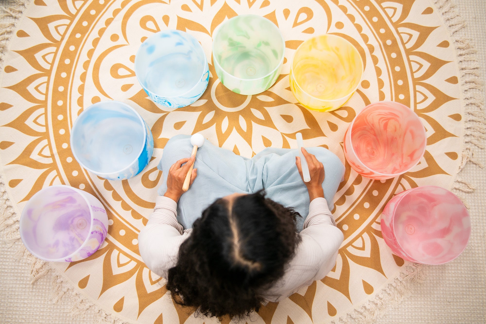 Crystal Singing Bowl Chakra Set, Marble 7-Piece