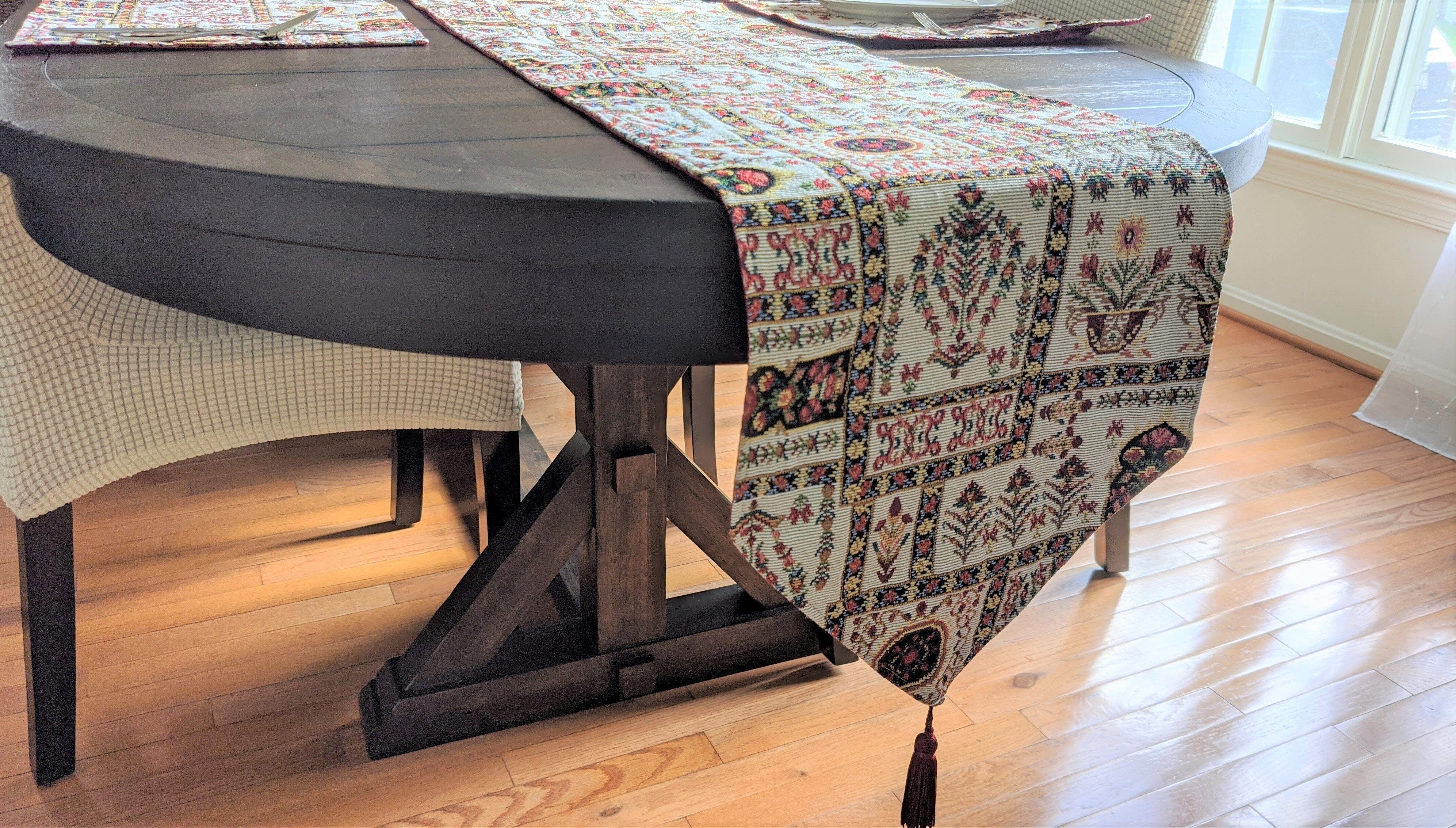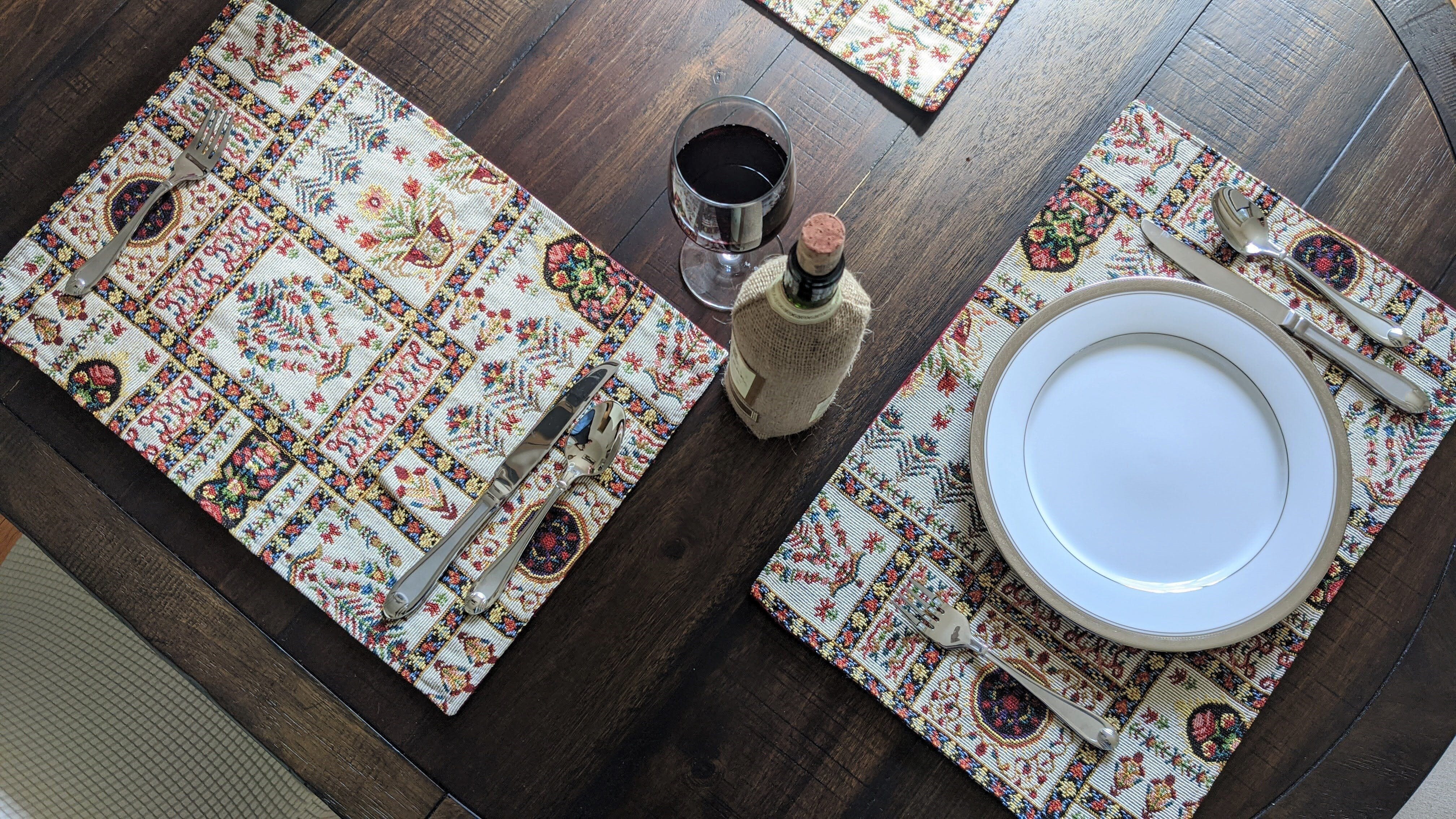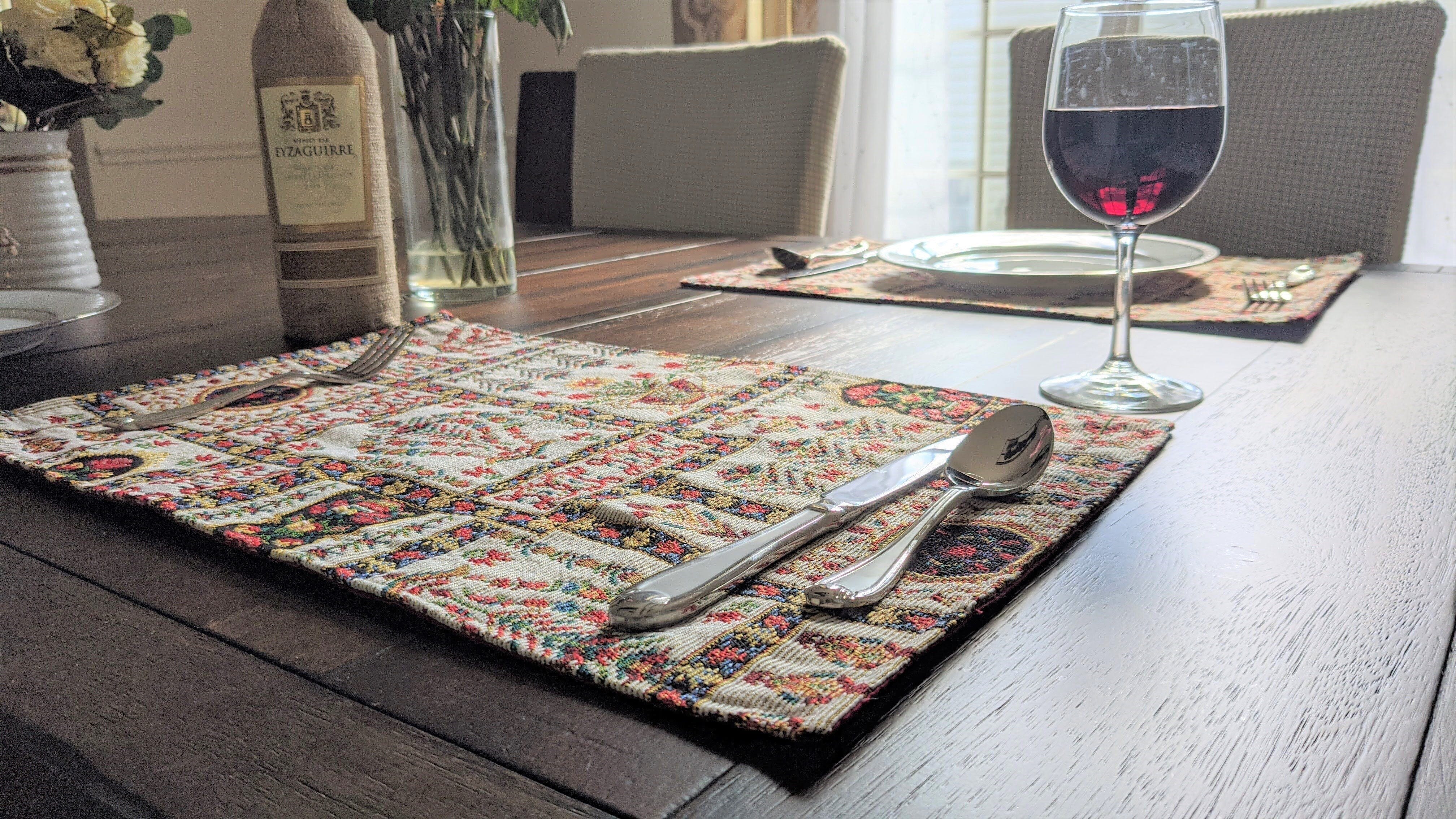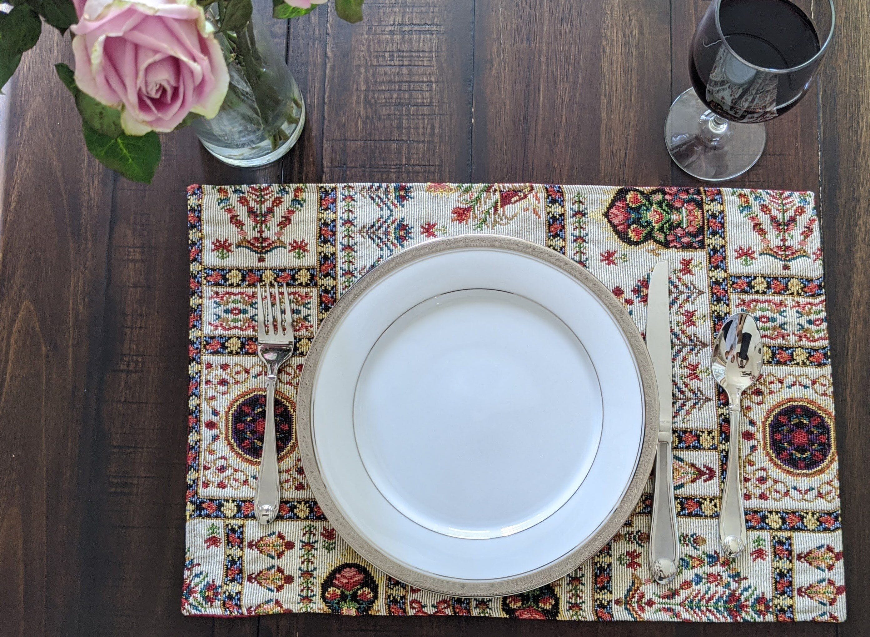 DaDa Bedding Set of 8 Pieces Light Botanical Mughal Floral Table Woven Tapestry - 4 Placemats, 2 Table Runners, 2 Throw Pillow Covers (18196)