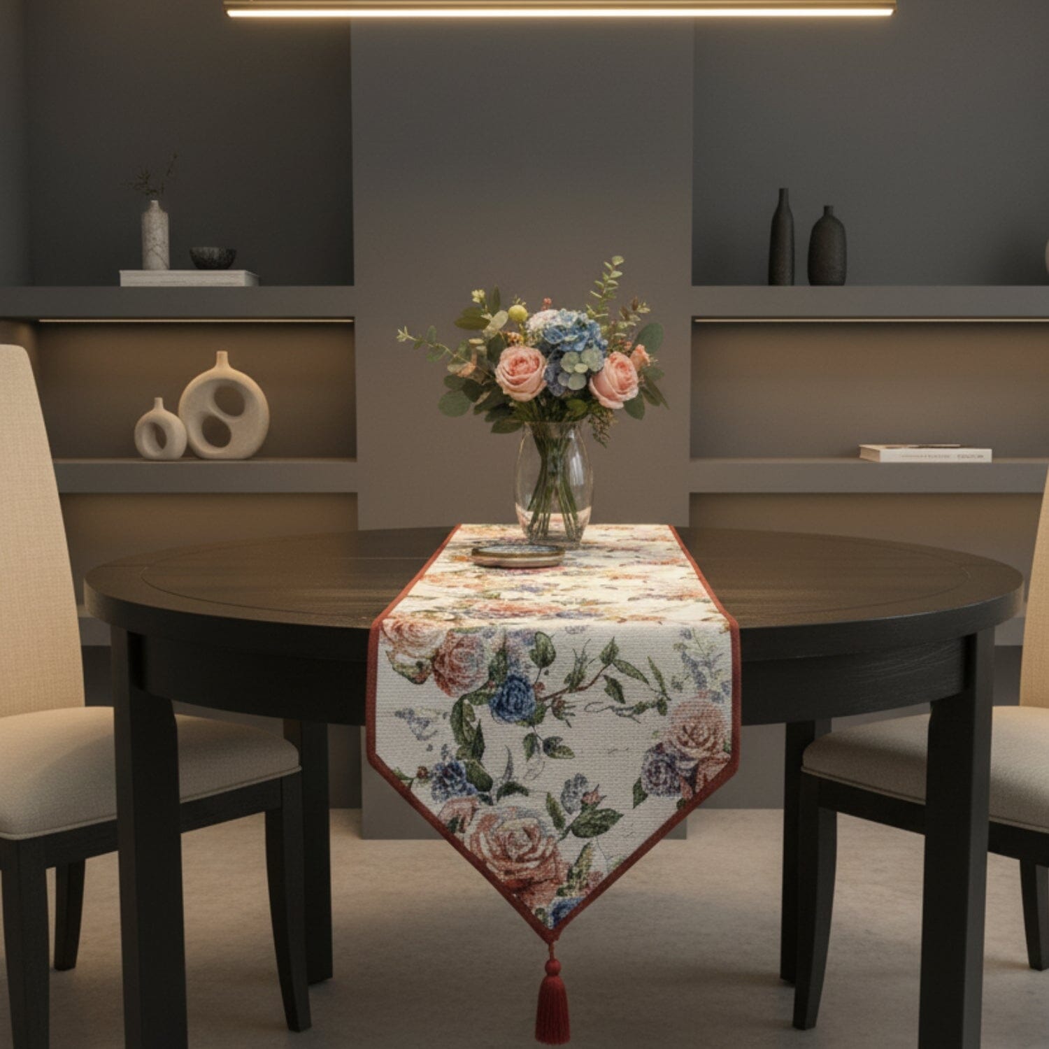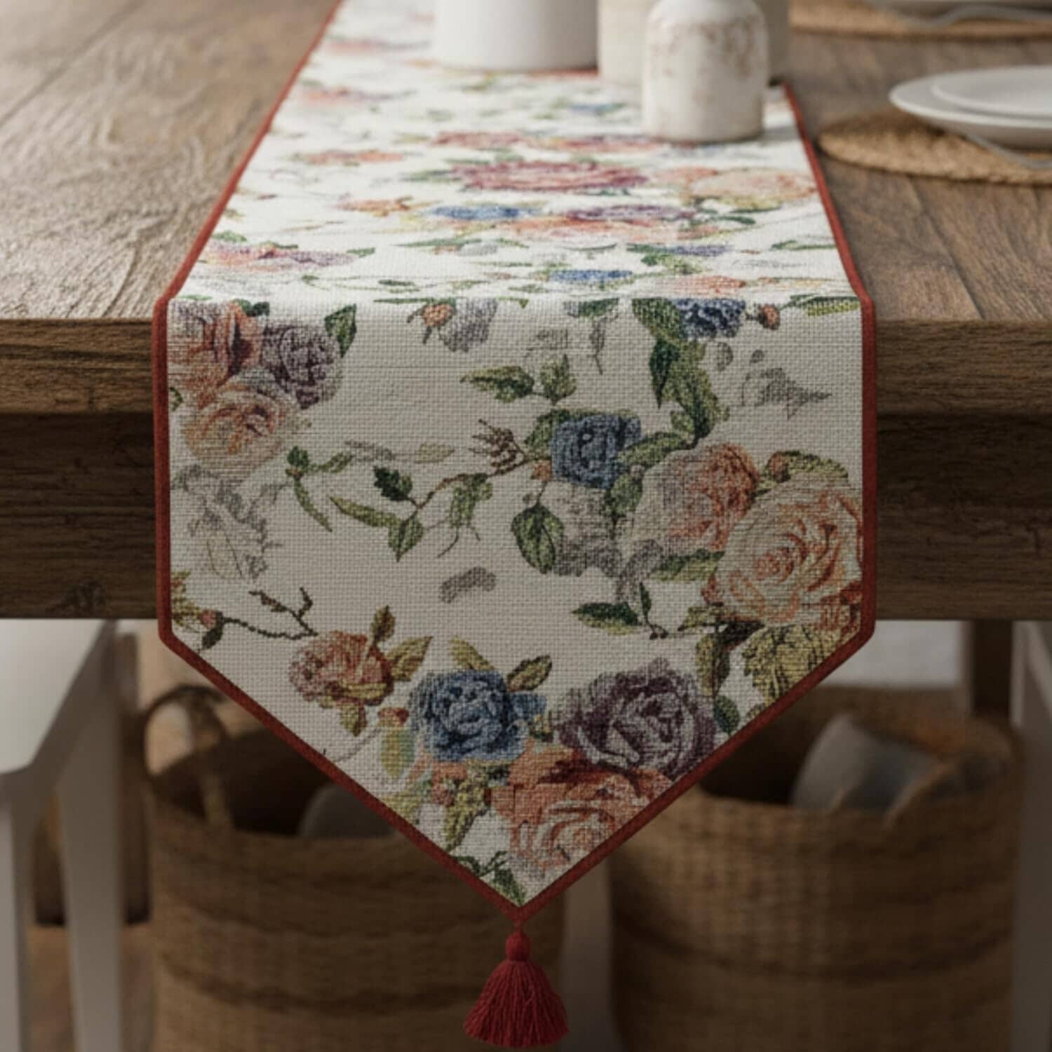 Whether styled for a cozy farmhouse kitchen, an elegant dining room, or used as a decorative console accent, this floral tapestry table runner makes the perfect year-round addition to your home décor and also a thoughtful gift for housewarmings, weddings, or holidays.