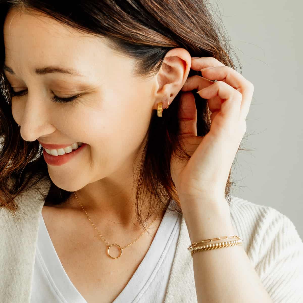 Our Essie Circle Necklace is a piece of timeless jewelry you will reach for over and over again. Featuring an... Read more