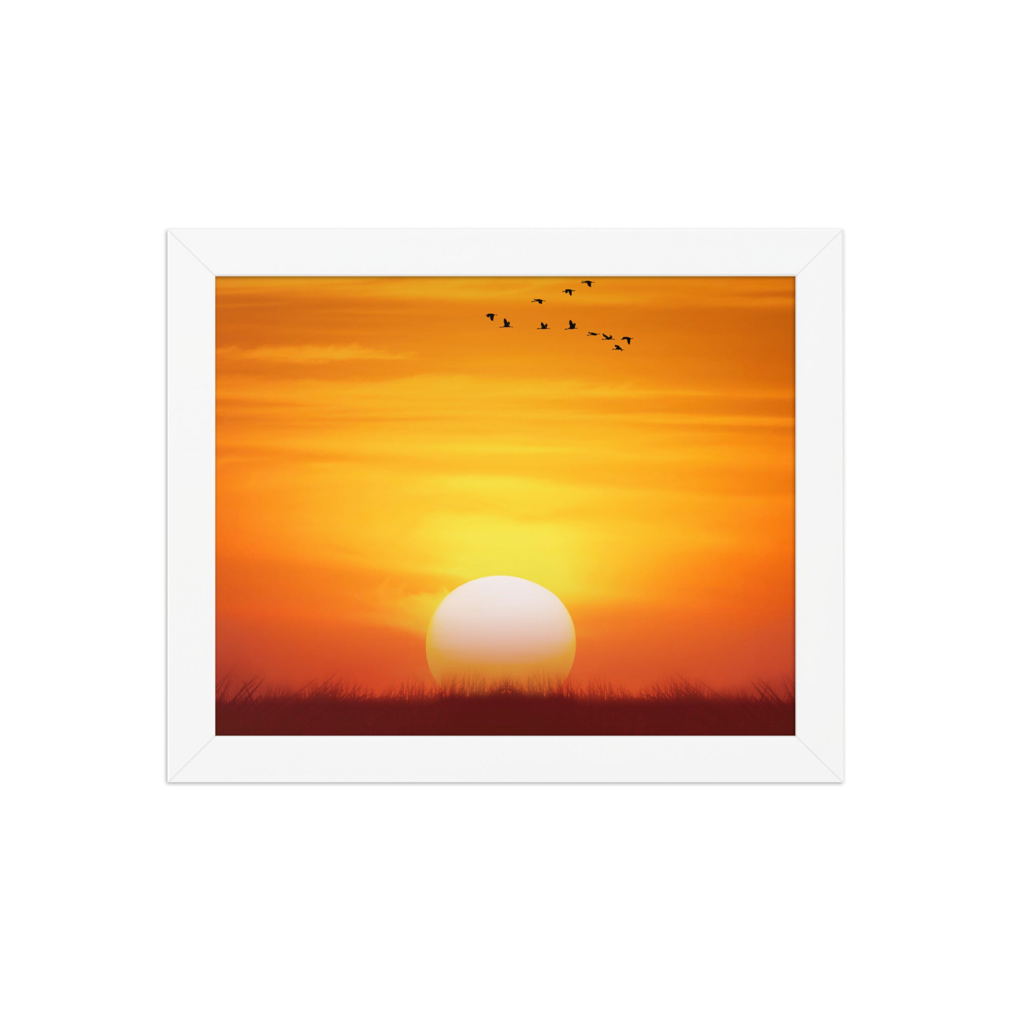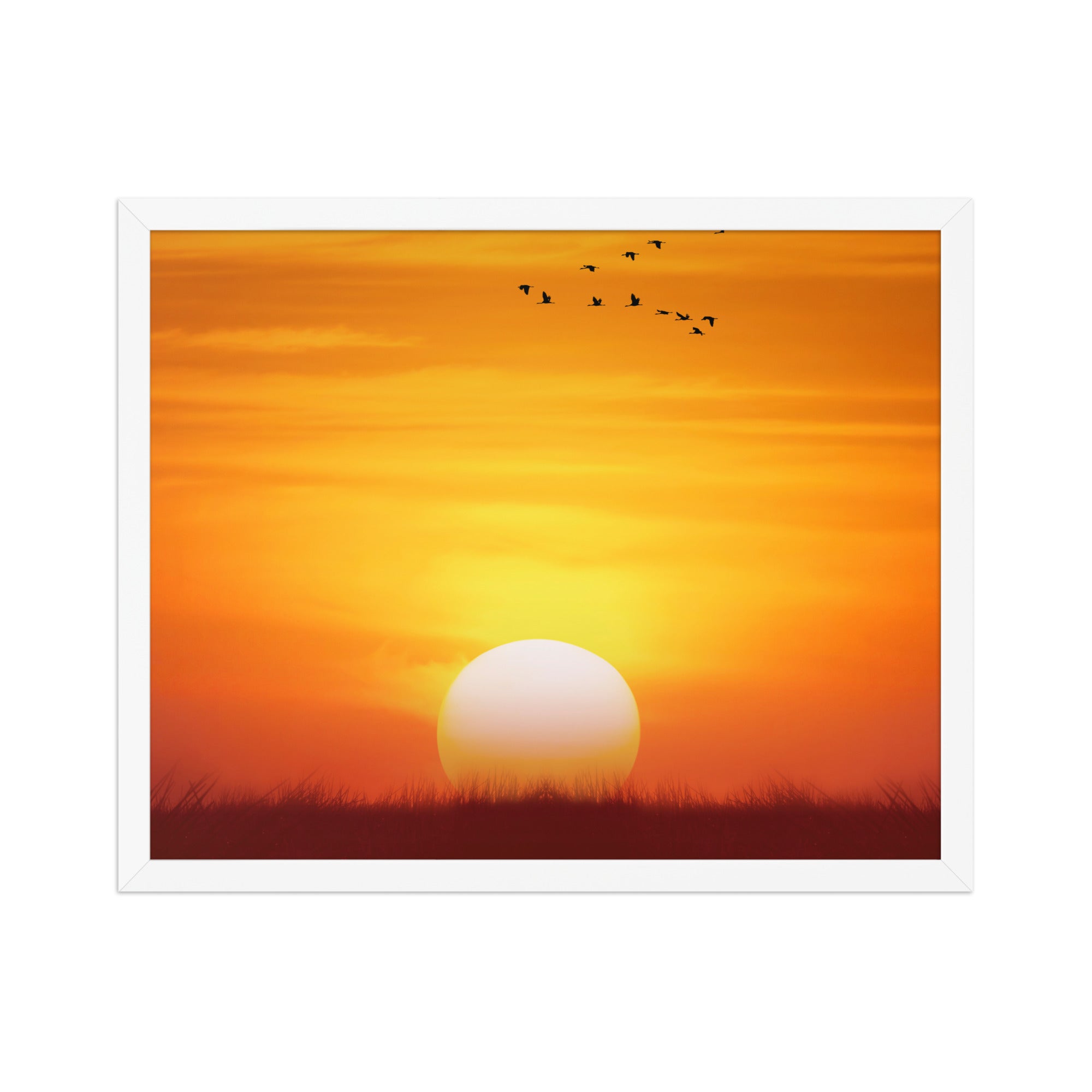 Elevate your space with the Golden Horizon Framed Poster, a striking piece designed to bring warmth and depth to any room. Printed on thick, premium matte paper, this artwork captures the beauty of a glowing sunset while the sleek matte black wooden frame adds a refined, contemporary finish. Crafted from renewable forest wood, it’s a statement piece that blends elegance with sustainability.