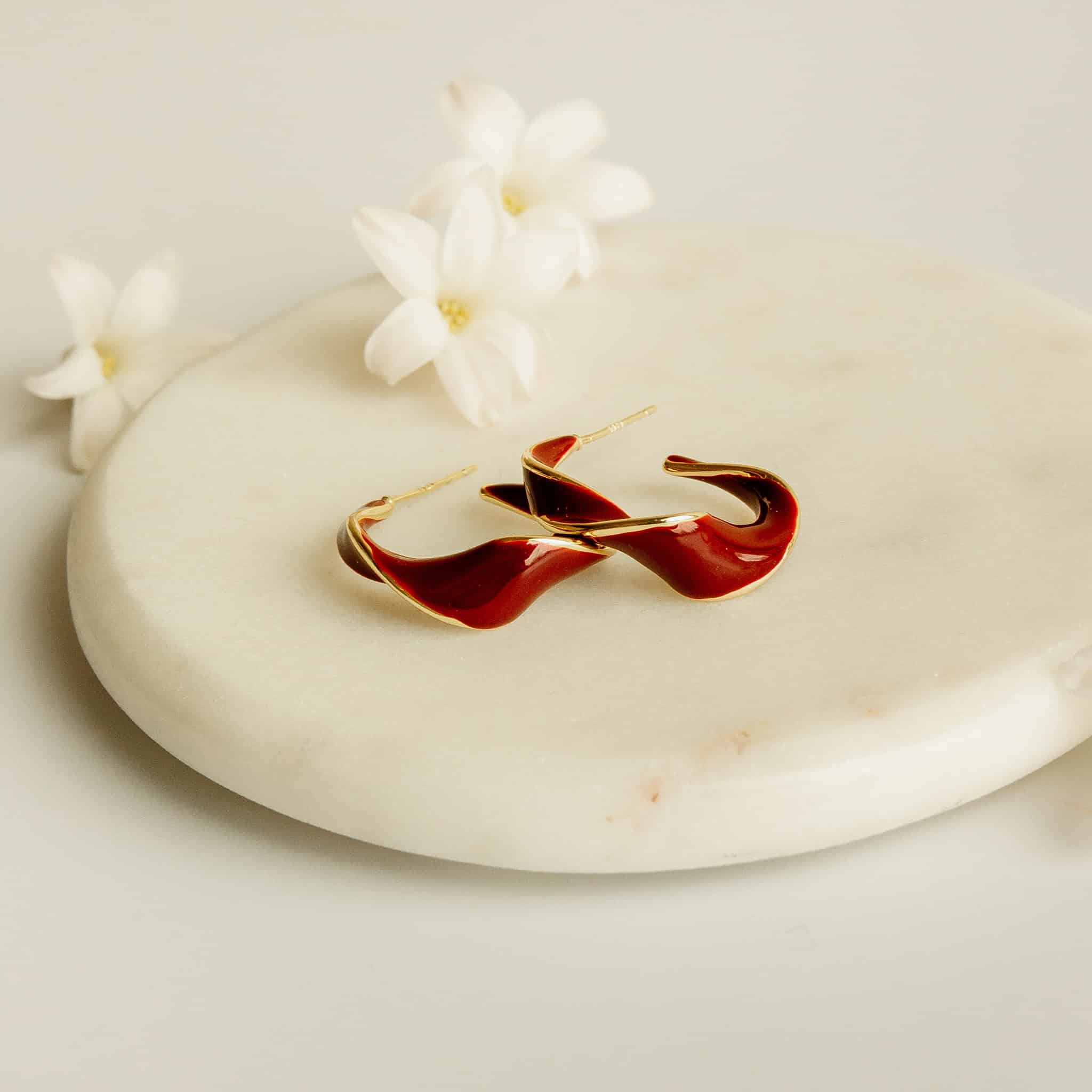 These lightweight hoops are twisted deep red burgundy and gold. They're perfect for adding a chic, festive, and elegant touch... Read more