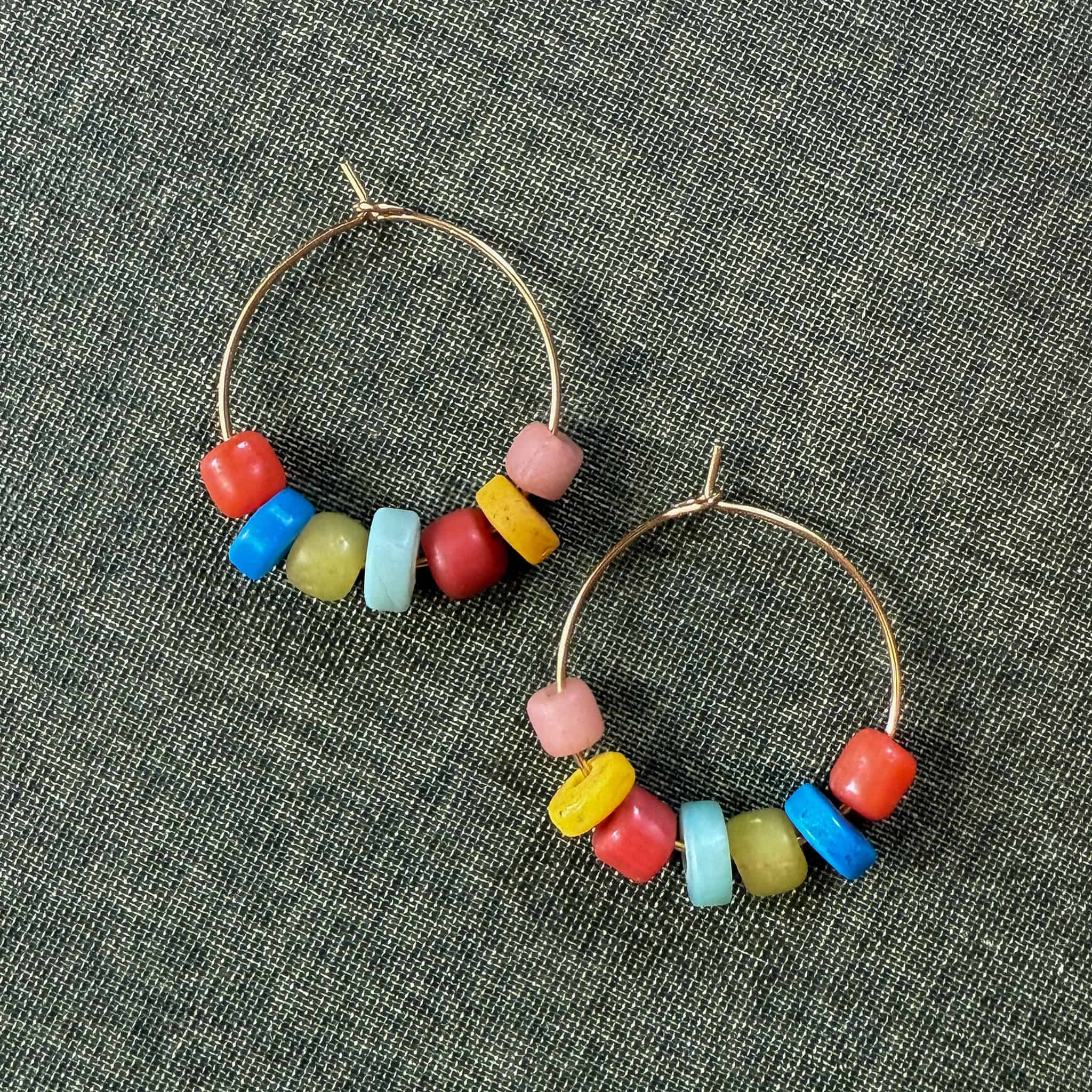 These beaded hoops capture the warm golden tones of a sunrise, while also making a positive impact. Made with recycled... Read more
