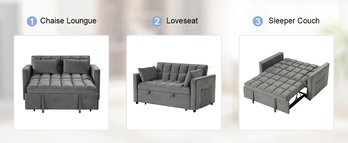 3-in-1 Convertible Design: Transforms from loveseat → lounge → sleeper in seconds
